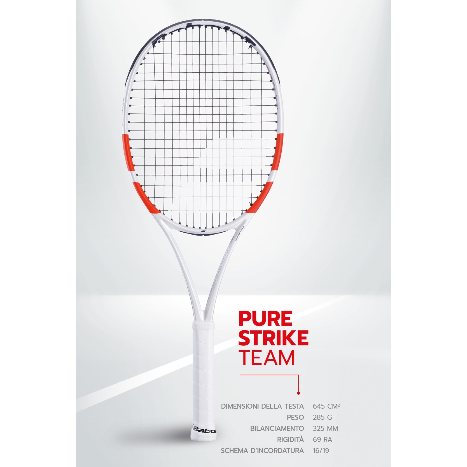 Introducing the 2024 version of the Pure Strike Team, the lightest member of the Pure Strike family. At under 11 ounces strung and boasting a low swingweight, the 2024 Pure Strike Team combines user-friendly speed with spin-friendly precision and great feel. As such, it is the perfect all-court weapon for the rising intermediate player. For 2024, Babolat adds FSI Control technology, which features tighter string spacing for an even more precise and predictable trajectory. To help with comfort, Babolat updates this racquet with NF2-Tech (flax fibers) in the shaft while also keeping the SMAC dampening material (SWX Pure Feel) in the mid-section of the head. As with previous generations, this frame benefits from Control Frame Technology, which blends square and elliptical cross sections to deliver a stable hitting experience with excellent ball feedback. Ultimately, with subtle updates to the feel and response, the Pure Strike Team continues to offer improving players a user-friendly entry point into the controllable power and great feel of the Pure Strike family