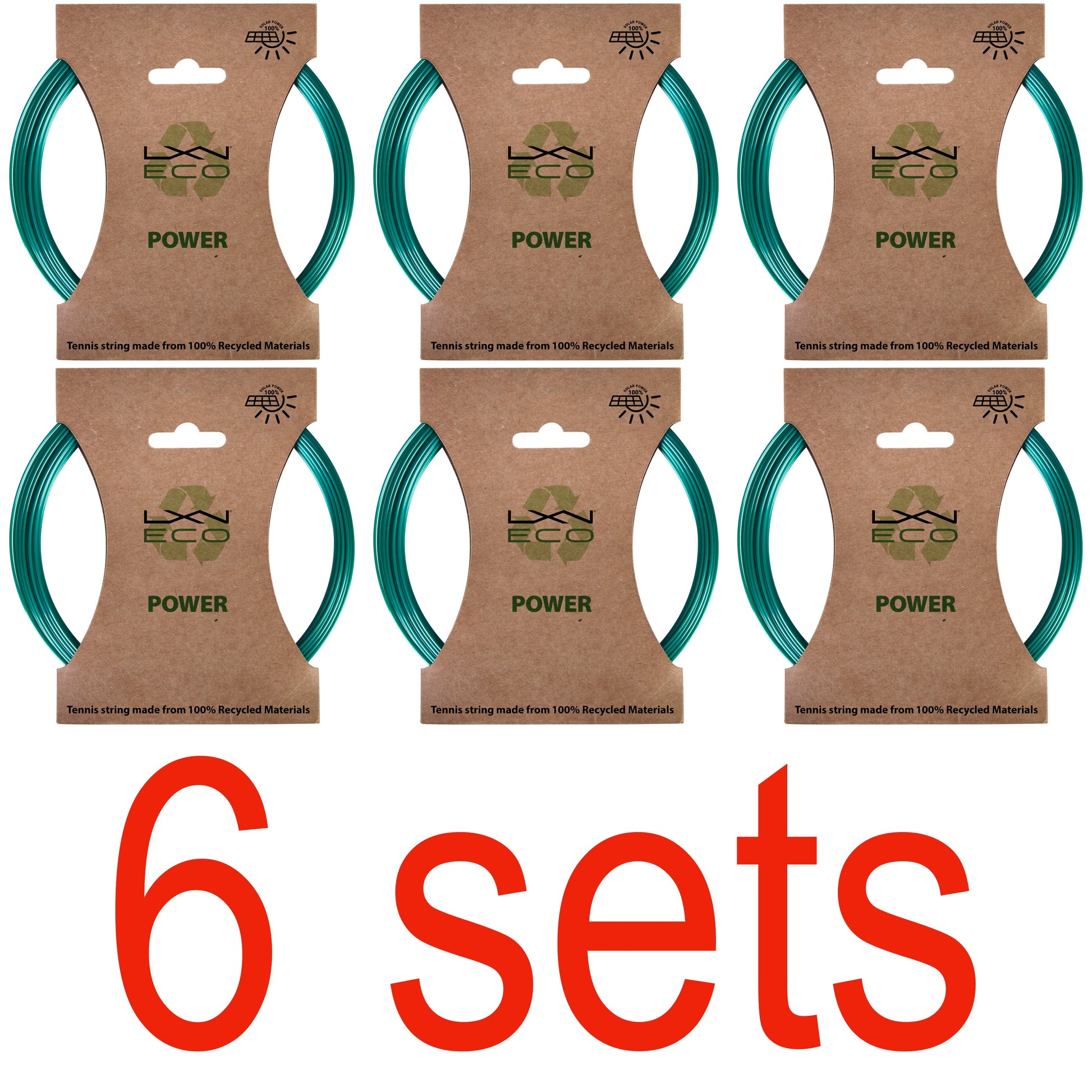 LXN Eco Power offers a durable, heavy-duty construction that's oriented for power, spin and control, yet forgiving when hitting delicate shots. Designed for all-around players who want to level up their game and make a sustainable choice, this hexagon shaped string grips the ball upon contact to create additional spin and keep your shots inside the court. It is the first string on the market made from 100% recycled materials.
