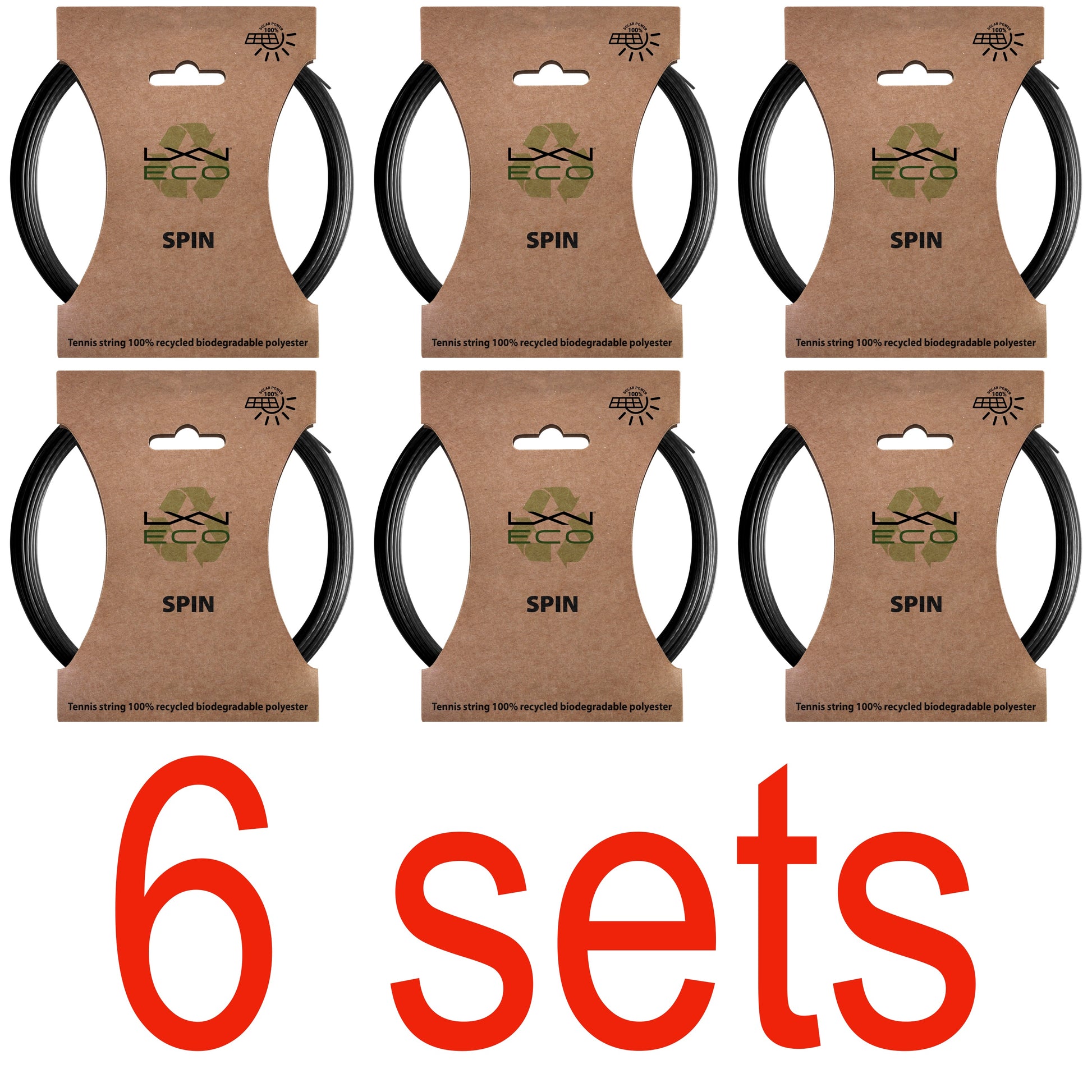 Luxilon's Eco Spin is a durable polyester string designed for ultimate precision and tension maintenance. The pentagon string shape offers great spin potential, grabbing the ball on contact and adding devastating arc to its flight. If you're looking for additional control to keep your shots in the court and want a sustainable choice, Eco Spin delivers, helping ambitious players take their game to the next level. Not only is this string made of 100% recycled materials, but it is also biodegradable.